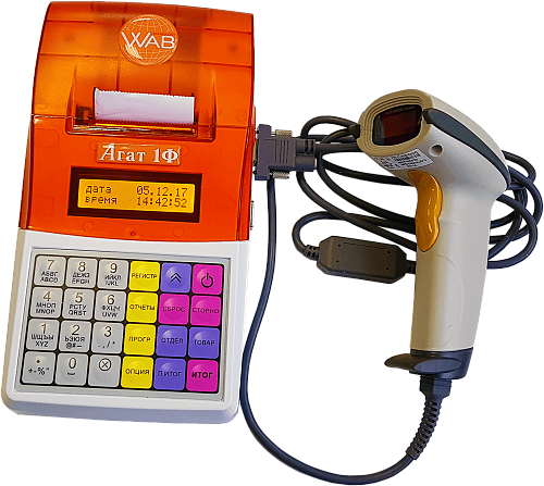 Агат 1Ф отличается понятной клавиатурой и дисплеем, а так же возможностью работы со сканерами штрих-кодов.