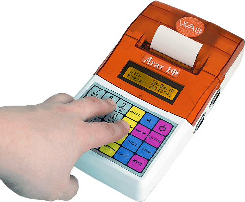Агат 1Ф - один из лучших вариантов из бюджетных онлайн ККТ, но на нем не удобно пробивать большое количество чеков за смену: не позволяет клавиатура.