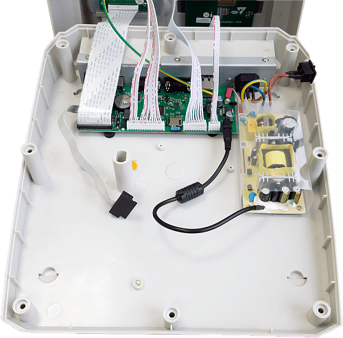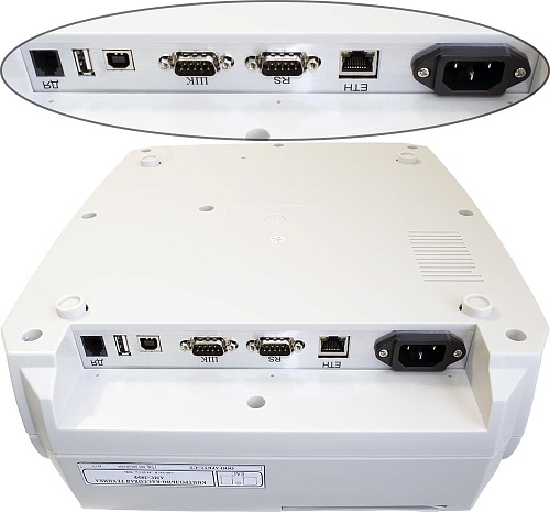 К АМС-300Ф можно подключить много внешних устройств, например USB или COM сканер штрих-кодов. Размер корпуса позволяет разместить следующие порты: USB-A, USB-B, порт RS-232 для денежного ящика, порт RS-232 для подключения компьютера, порт LAN.