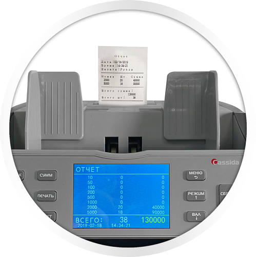 Профессиональный счетчик банкнот Cassida Apollo совмещает в себе счетчик, двухкарманный сортировщик с двумя CIS линейками и детектор банкнот со следующими видами детекции: