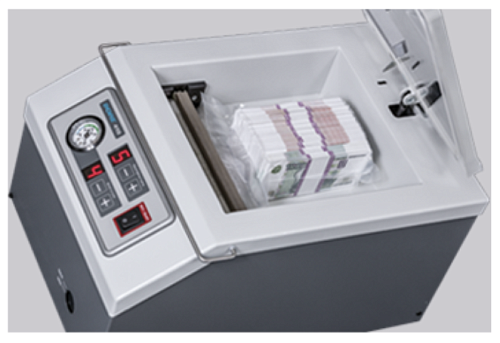 Вакуумный упаковщик банкнот DORS 410 со скоростью упаковки 6 пакетов в минуту. Длина сварного шва составляет 229 мм. Есть возможность печати реквизитов на заварочном шве. Размер камеры составляет 249 / 220 / 89 мм. Температура и глубина вакуума могут устанавливаться вручную и сохраняться в памяти устройства. Можно применять силиконовое и фторопластовое клише.