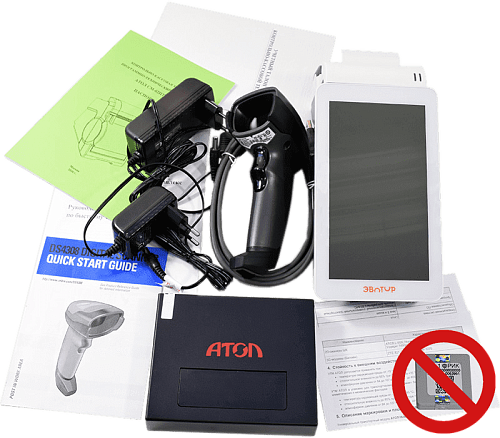 В данной реализации в комплект включены 2D сканер штрих-кода, универсальный транспортный модуль. Система полностью готова для продажи подакцизных товаров и полностью совместима с ЕГАИС.